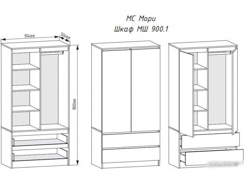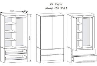 Шкаф распашной ДСВ Мори МШ 900.1 (графит)