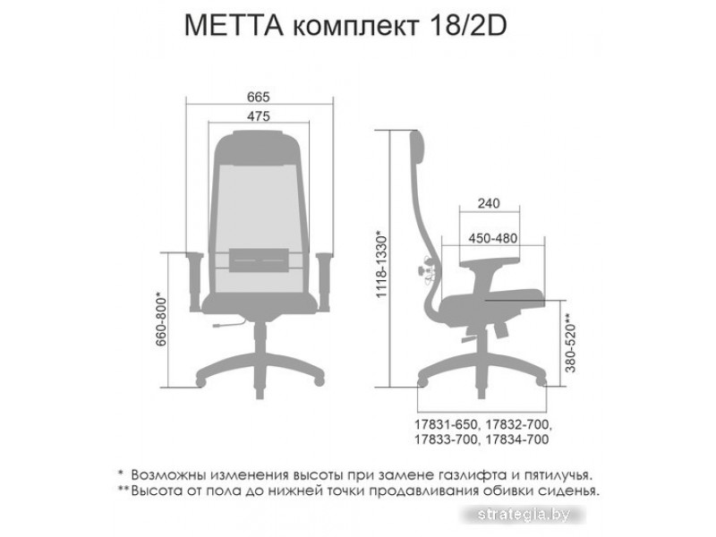 Кресло Metta SU-1-BK Комплект 18/2D CH ов/сечен (темно-серый)