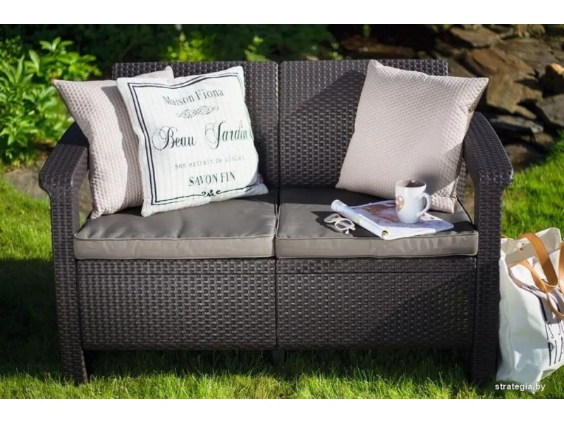 Садовый диван Keter Corfu II Love Seat 258946 (коричневый)
